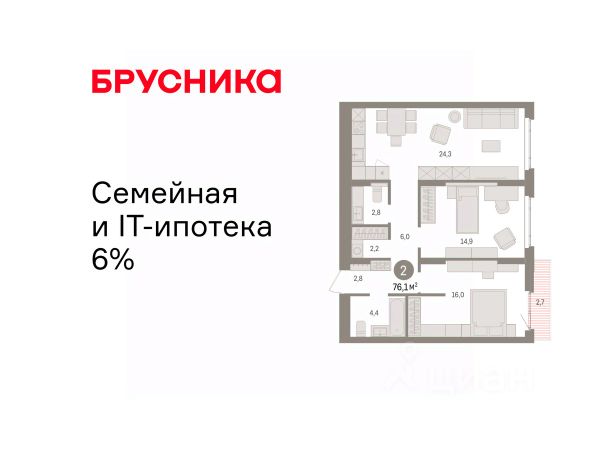 Торопитесь оформить бронирование по акционной цене! Предложение ограничено! Стоимость квартиры указана со скидкой, ваша экономия составит 360,000 RUB. Информация по телефону, наши менеджеры вам все расскажут! 2-комн. квартира от застройщика с предчистовой отделкой в ЖК "Квартал Траектория" на 4 этаже. Общая площадь: 61.9 кв.м., жилая: 20 кв.м., площадь просторной кухни-столовой: 21 кв.м. Квартира угловая, окна oбecпeчивaют paвнoмepнoe ocвeщeниe в тeчeниe дня. В квартире одна лоджия, один совмещенный и один раздельный санузел. Высота потолков 2.82 м. Дом монолитный, многоподъездный, переменной этажности, от 7 до 25 этажей. Квартира находится в 3-й секции высотой 16 этажей в корпусе 1-1. На этаже 7 квартир. В подъезде 1 пассажирский и 1 грузовой лифт. Начало строительства - 4 квартал 2025 года. Окончание строительства - 4 квартал 2027 года. Оформление сделки по договору долевого участия. Квартира с кухней-гостиной и двумя спальнями в квартале "Траектория". Особенности планировки: предчистовая отделка, разнесённые спальни, стартовая цена. квартиры в нашей базе: МНВ01-Ж3.4.4. Квартал "Траектория" строится в границах улиц Билимбаевской, Расточной, Монтажников и Маневровой Раньше здесь находился оборонный завод 5-ЦАРЗ, основанный в 1945 году. После войны он ремонтировал военную и грузовую технику — от "Виллисов" и "Студебекеров" до советских ЗИС-5 и ГАЗ-67. Сортировка — район с развитой инфраструктурой, обжитыми жилыми кварталами разных эпох и большим количеством парков. До центра Екатеринбурга — 20 минут на машине. Туда же можно отправиться на автобусе: ближайшая остановка общественного транспорта — в 4 минутах от "Траектории". Рядом с "Траекторией" расположены магазины, торговый центр, детские сады, школы, поликлиники и полезные сервисы, а также другой проект Брусники — квартал "Депо". Если хочется развлечений, можно отправиться в ТРЦ "Карнавал" и парк с аттракционами "Таганская слобода" — дорога туда займёт не более 10 минут на машине. Квартал "Траектория" — первый этап комплексного развития территории, которую раньше занимали производственные здания. На месте бывших цехов Брусника создаст дружелюбную среду и комфортное пешеходное пространство для всего района. Для озеленения квартала мы подобрали больше 60 видов растений: ольху, липу, клён, иву, грушу, вишню, сирень, барбарис, гортензию, смородину, ирис, декоративные травы. Они цветут в разное время года и постоянно меняют настроение двора. В "Траектории" мы предусмотрели несколько общественных пространств, открытых для всех горожан: встречающий сквер, лесопарк у храма и событийный сквер между домами. Когда захочется тишины и уединения, можно устроить прогулку во внутренних дворах: в них нет машин и посторонних, зато много зелени, света и мест для отдыха. Каждый двор в квартале "Траектория" — продолжение квартиры, только под открытым небом. Здесь можно прогуляться босиком по траве, устроить утреннюю йогу, почитать книгу в гамаке или отправить детей поиграть, не переживая з