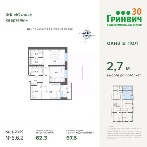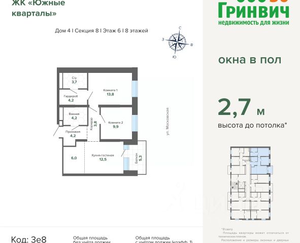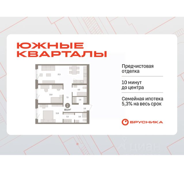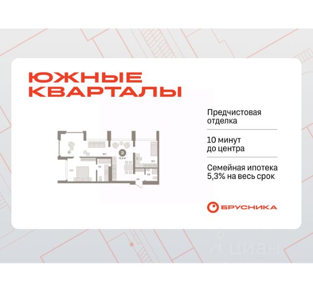 Спешите забронировать на этих условиях! Предложение ограничено! Стоимость квартиры указана со скидкой, ваша экономия составит 520,000 RUB. Информация по телефону, мы вам все подробно расскажем! Квартира с кухней-гостиной и двумя спальнями в Южных кварталах. Особенности планировки: балкон, гардеробная, постирочная, предчистовая отделка. квартиры в нашей базе: ЮКВ08-Ж5.2.4. Жилой район "Южные кварталы" расположен в границах улиц Московская, Шаумяна и Фурманова, недалеко от автовокзала. До центра города — 10 минут на автомобиле. До станции метро "Чкаловская" — 15 минут пешком. Рядом находится парк, школа олимпийского резерва, несколько гимназий, лицей, детские сады и городская больница. "Южные кварталы" — проект комплексного редевелопмента территории, разработанный архитекторами Брусники совместно с голландскими бюро. Он разделен на несколько частей, каждая из которых имеет свой характер. Вдоль оживленной Московской появятся более высокие и крупные дома. Профиль спокойной и очень зелёной Шаумяна сформируют кварталы среднеи этажности. В глубине района мы расположим урбан-виллы, чуть дальше — башни-доминанты. Последние будут играть роль визуальных акцентов и впоследствии станут символами этого места. Ближе к Фурманова мы организуем образовательный кластер. Его составят два детских сада на 300 и 325 мест и школа, рассчитанная на 1500 учеников. Школа будет иметь спортивную зону, которая станет доступна и жителям района. Свяжет территорию сеть общественных пространств. Её центральным звеном станет зелёный променад, проходящий сквозь весь район и соединяющий его с парком 50-летия ВЛКСМ. #26gvgf Продается 2-комнатная квартира в ЖК Южные кварталы в Екатеринбурге.