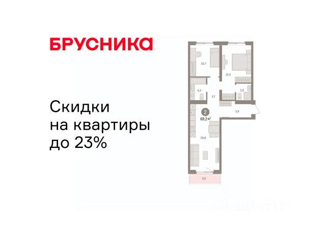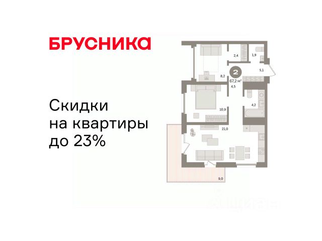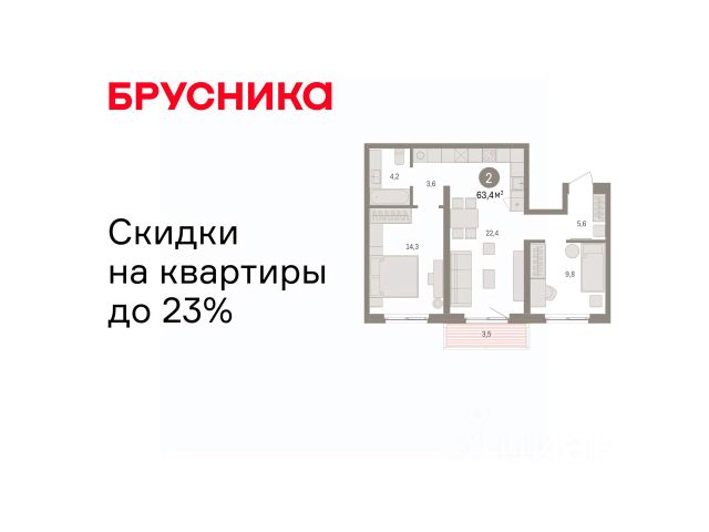 Торопитесь оформить бронирование по этой цене, предложение ограничено! Стоимость квартиры указана со скидкой, ваша экономия составит 640,000 руб. По всем вопросам звоните в офис продаж, наши менеджеры вам все расскажут. Квартира с кухней-гостиной и двумя спальнями в Южных кварталах. Особенности планировки: балкон, вид во двор, гардеробная, ипотека 10%, лоджия, мастер-спальня, окна на две стороны, предчистовая отделка, разнесённые спальни. квартиры в нашей базе: ЮКВ11-Ж6.9.2. Жилой район "Южные кварталы" расположен в границах улиц Московская, Шаумяна и Фурманова, недалеко от автовокзала. До центра города — 10 минут на автомобиле. До станции метро "Чкаловская" — 15 минут пешком. Рядом находится парк, школа олимпийского резерва, несколько гимназий, лицей, детские сады и городская больница. "Южные кварталы" — проект комплексного редевелопмента территории, разработанный архитекторами Брусники совместно с голландскими бюро. Он разделен на несколько частей, каждая из которых имеет свой характер. Вдоль оживленной Московской появятся более высокие и крупные дома. Профиль спокойной и очень зелёной Шаумяна сформируют кварталы среднеи этажности. В глубине района мы расположим урбан-виллы, чуть дальше — башни-доминанты. Последние будут играть роль визуальных акцентов и впоследствии станут символами этого места. Ближе к Фурманова мы организуем образовательный кластер. Его составят два детских сада на 300 и 325 мест и школа, рассчитанная на 1500 учеников. Школа будет иметь спортивную зону, которая станет доступна и жителям района. Свяжет территорию сеть общественных пространств. Её центральным звеном станет зелёный променад, проходящий сквозь весь район и соединяющий его с парком 50-летия ВЛКСМ. #269zuc Продается 2-комнатная квартира 2-комнатных квартир в Южные кварталы в Екатеринбурге.