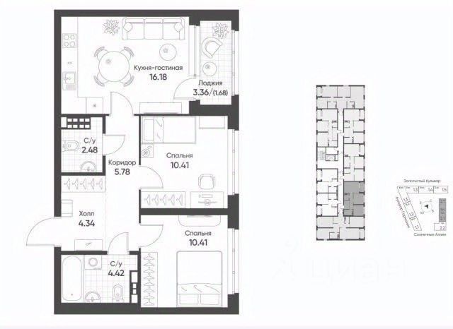 Продается просторная двухкомнатная квартира в микрорайоне Солнечный, отличающаяся рациональной и современной планировкой. Ключевым преимуществом является большая кухня-гостиная, объединенная с утепленной лоджией, что создает светлое и функциональное пространство для жизни и приема гостей. Обе комнаты изолированные, правильной прямоугольной формы, что обеспечивает комфортное размещение мебели и зонирование. Квартира имеет два раздельных санузла, что значительно повышает удобство для жильцов. Объект находится в состоянии предчистовой отделки, что позволяет новому владельцу воплотить собственные дизайнерские решения без затрат на демонтаж, завершив ремонт в кратчайшие сроки и в соответствии с личными предпочтениями. Локация характеризуется развитой социальной инфраструктурой: в пяти минутах ходьбы расположены Центр художественной гимнастики и Уральский губернаторский лицей. Транспортная доступность — сильная сторона объекта: в пешей доступности находятся остановки общественного транспорта, выезд на ЕКАД занимает около четырех минут на автомобиле, а дорога до центра Екатеринбурга — примерно 22 минуты как на личном транспорте, так и на трамвае. Данное сочетание качественной планировки, выгодного расположения и состояния под отделку представляет собой оптимальное предложение для тех, кто ищет надежную инвестицию в недвижимость или современное жилье для жизни.