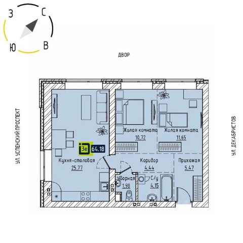 Продаётся 3-комнатная квартира в строящемся доме (Дом 1.2), срок сдачи: III-кв. 2027, общей площадью 64.18 кв.м., на 2 этаже. Новый жилой комплекс "Brick House" от застройщика "ГК Интег Девелопмент" расположен по адресу: г. Верхняя Пышма, Успенский проспект.