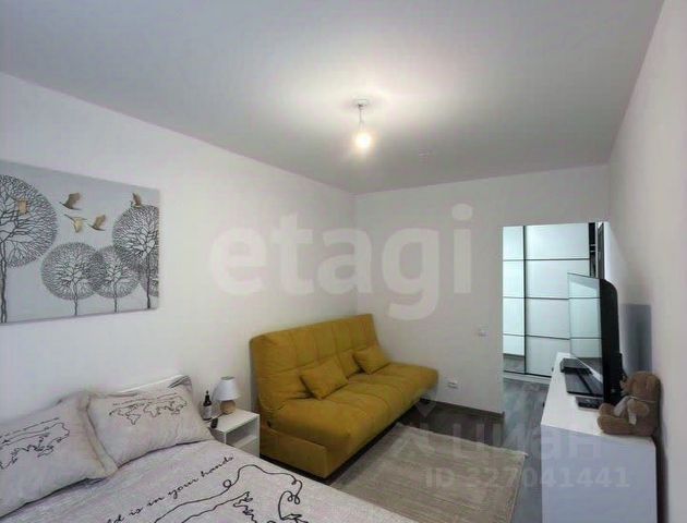 В квартире остается кухонный гарнитур со встроенной посудомоечной машиной, варочной поверхностью и духовым шкафом; вытяжка, диван, шкаф в прихожей и комнате, большая двуспальная кровать, стиральная машинка.
