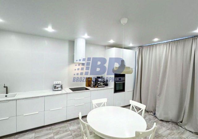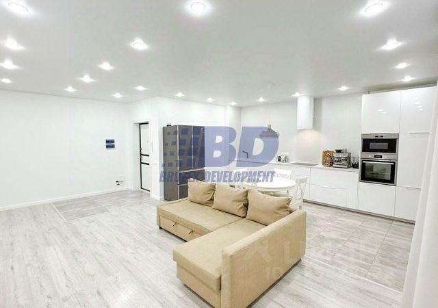 3-комнатная квартира площадью 76 квадратных метров, имеет выверенную планировку. В квартире имеются детская комната, мастер-спальня для взрослых, санузел, гардеробная комната, просторный холл, гостиная комната с системой домашнего кинотеатра и камина, полноценная кухня. Особенность планировки окна выходят на разные стороны дома.