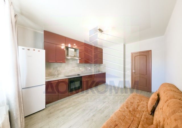 Кухонная зона оборудована гарнитуром, электроплитой со стеклокерамической варочной панелью и духовкой, вытяжкой, холодильником, в зоне гостиной на стене телевизор. В жилой комнате имеется встроенный функциональный шкаф-купе. Стены и пол в санузле облицованы керамогранитом, дорогая сантехника, сан фаянс - инсталляция. В прихожей - шкаф-купе для одежды, видеодомофон, надежная входная-сейф дверь.