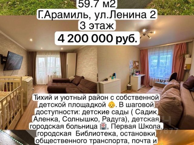 В доме произведен капитальный ремонт в 2022 году, заменены трубы канализации и отопления, обновлена кровля. В подъезде идеальная чистота, ни каких посторонних запахов и мусора. Квартира очень теплая и светлая, великолепная фумоизоляция. В доме всего 16 квартир, что позволяет поддерживать места общего пользования в прекрасном состоянии. Инфраструктура района: детская поликлиника, продуктовые магазины, торговые центры, остановки транспорта, школа, дет.сад, спротивный центр, удобный выезд на магистрали. Три совершеннолетних собственника. Чистая продажа. Без обременений. ID объекта в нашей базе: 3700 Купить 3-комнатную квартиру до 4,6 млн. рублей в Арамиле.