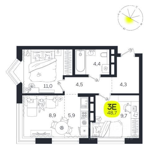 Заезжай и живи! 3-комнатная квартира, примерная площадь 50 м2 в Екатеринбурге.