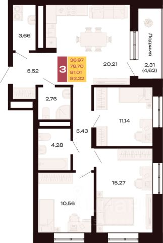 2 больших лоджии (ещё плюсом квадратов 15-17, при желании можно расширить жилплощадь)