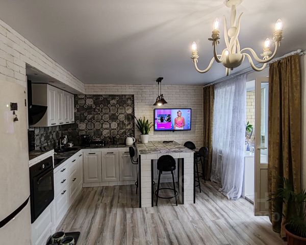 В квартире сделан капитальный ремонт заменена проводка, выровнены стены, ламинат, пластиковые окна, застеклен балкон, многоуровневое освещение.