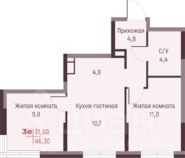 Квартира общей площадью 55,4 кв. м: