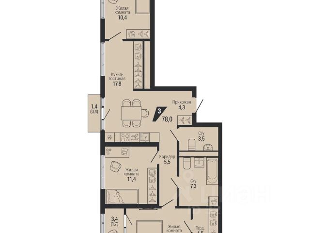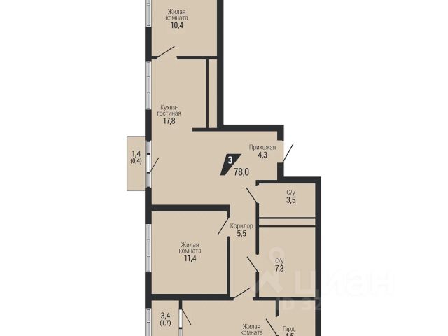 Жилой квартал "К100" на Космонавтов, 100 будет состоять из трех монолитно-кирпичных домов, объединенных общим двором. Застройщик компания "Практика". Планировки начинаются от 44,8 м² и доходят до 159,5 м². На каждом этаже располагается от восьми квартир классического и евроформата от двух до пяти комнат. Застройщик предлагает два вида отделки: white box и чистовую. Есть возможность перепланировки. Двор с ландшафтным озеленением разделен на три зоны. Для детей игровые площадки с меловыми досками и уличными шахматами, для взрослых лаунж-зона с креслами и столиками для отдыха, для спортсменов воркаут-площадка. На первом этаже лобби-клуб с игровыми комнатами, залом для йоги, коворкингом и мини-кинотеатром, колясочные и велосипедные помещения. Для автомобилистов предусмотрены гостевые места и подземный паркинг с доступом на лифте. На всей территории жилого комплекса установят видеонаблюдение. В доме будет работать консьерж-сервис в режиме 24/7. Дополнительные услуги включают клининг, выгул домашних животных, доставку еды из ресторанов и вызов такси. Также предусмотрена система "Умный дом". Рядом с жилым комплексом находятся сосновый бор, школы, детские сады, медицинские учреждения, торговые центры и супермаркеты, остановки общественного транспорта и станция метро. В шаговой доступности от дома откроется новый корпус уникальной гимназии "Арт-Этюд" — многопрофильного центра общего и художественного образования для детей от 3 до 18 лет. Строительство первой очереди жилого квартала "К100" на Космонавтов, 100 завершится в четвертом квартале 2026 года. Продается 3-комнатная квартира 80 м2 в Свердловской области.