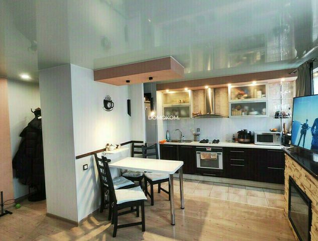 * Кухня: холодильник, встроенная посудомоечная машина, электроплита, духовой шкаф, гарнитур с подсветкой, каменный фартук, люстра.
