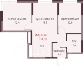 Квартира общей площадью 55,4 кв. м: