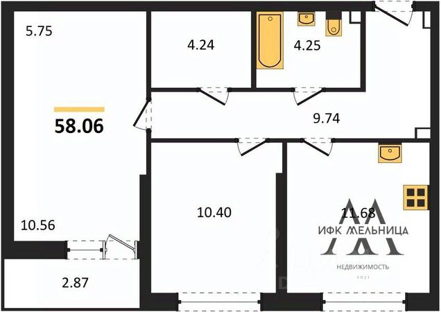 Продаётся 3-комнатная квартира в строящемся доме (Дом 6), срок сдачи: III-кв. 2027, общей площадью 62.9 кв.м., на 4 этаже. Расположение, транспортная доступность
