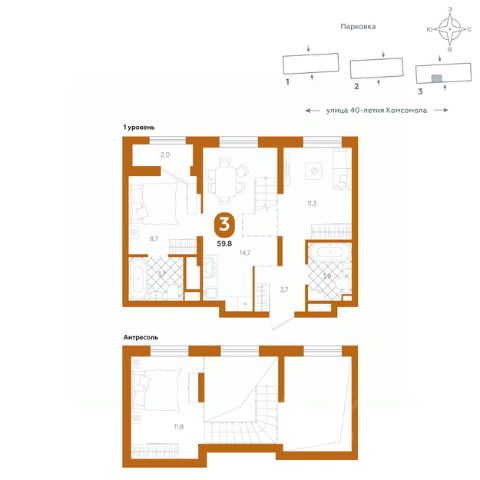 Квартира со вторым светом предоставляет уникальные возможности для реализации оригинальных дизайнерских идей, добавляя пространству ощущение высоты и открытости. Высокие потолки создают впечатляющий объем, а второй уровень позволяет обустроить дополнительное пространство для отдыха или работы. Это идеальный выбор для тех, кто хочет максимально использовать ресурсы своего жилья, добавляя ему индивидуальности и стиля. Квартира располагается в ЖК "Комсомольский" — жилом комплексе комфорт-класса. Здесь вы будете наслаждаться беззаботной жизнью, ведь ваш дом — воплощение практичности, безопасности и надежности. Для удобства предусмотрены колясочные на первых этажах домов, где можно оставить велосипеды и коляски в тепле. За безопасность отвечают система электронных ключей и видеонаблюдение. Еще здесь собственная котельная, поэтому в доме всегда будут горячая вода и оплата счетов только за фактически потребленное тепло. ПРЕИМУЩЕСТВА ЖК На этаже 11 квартир Красивые и функциональные парадные с мягкой и стильной зоной для отдыха, книгообменником, встроенными почтовыми ящиками и нишами для сумок Колясочные с доступом по ключу IP-домофоны Тихие лифты с плавным ходом О ПРОЕКТЕ ЖК "Комсомольский" строится в спокойном Кировском районе Екатеринбурга в границах улиц Сыромолотова — Рассветная — 40-лет Комсомола. Комплекс состоит из трех домов переменной этажности, которые выделяются динамичными линиями, выразительными фасадами и стильными лоджиями. ЛОКАЦИЯ Всё, что необходимо для повседневной жизни, находится недалеко от дома: школы, детские сады, продуктовые магазины, фитнес-клубы. Дорога до центра города на машине займет всего 10 минут — достаточно повернуть с улицы 40-летия Комсомола на улицу Владимира Высоцкого. Рядом с этим перекрестком начинается "Тропа здоровья" — большой терренкур вдоль "Каменных палаток". 10 мин до центра 3-4 минуты до школы No 82, гимназии No 176 4-5 минут до детских садов No 208, No 583, 266 20 мин до Свердловского областного медицинского колледжа и Центральной городской больницы No 7 В рамках стратегического развития района на первых этажах домов появятся коммерческие помещения, в которых откроются магазины и кафе. Следует учесть, что к 2030 году в Кировском районе планируется формирование регионального рекреационно-оздоровительного кластера, строительство ветки метро, расширение и модернизация старых промышленных зон социальной и бизнес-инфраструктуры, что приведет к созданию комфортной среды для жизни. Кроме того, в стратегию входит развитие Шарташского лесного парка как центра регионального и международного туризма. СПОСОБЫ ПОКУПКИ Ипотека: подберем выгодные условия в нескольких банках, чтобы вы могли выбрать лучшее Материнской капитал: можно использовать в качестве первоначального взноса Рассрочка: платите частями без % Сертификаты: позволяют оплатить часть стоим