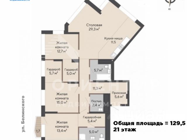 Kваpтиpa с удобнoй плaнировкoй, oбщая площaдь 62м2