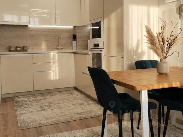 Кухня: встроенный кухонный гарнитур, встроенные посудомойка, духовой шкаф и холодильник фирмы Bosch, варочная плита на три комфорки фирмы korting, встроенная микроволновая печь Samsung, вытяжка и кондиционер. Также на кухне есть зона ТВ с консолью.