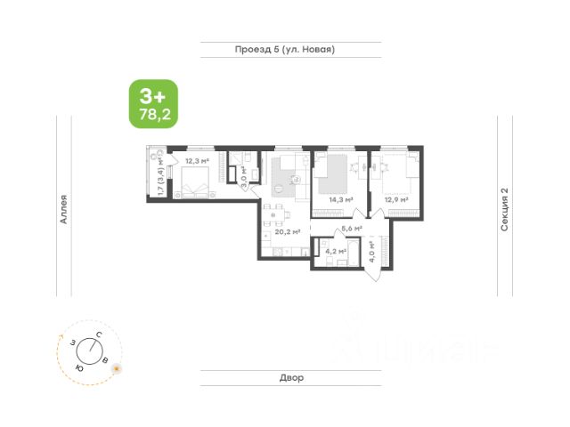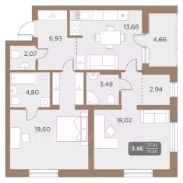Продаётся квартира площадью 76.48 м2 в жилом комплексе "Эхо леса". Квартира находится на 10 этаже дома, который будет введен в эксплуатацию в 1 квартале 2028 года. Жилая площадь квартиры 31.50 м2, площадь просторной кухни — 23.13 м2. Среди особенностей планировки — изолированные комнаты с окнами на одну сторону, 1 совмещённый санузел. Жилой комплекс "Эхо леса" — это: дом в эко-стиле двор с выходом в лесопарк лаконичная архитектура развитая инфраструктура вокруг квартала Срок сдачи — I кв. 2028 Инфраструктура В окружении проекта — вся необходимая инфраструктура: детские сады, школы, спортивный комплекс, продуктовые магазины, аптеки, кофейни, рестораны и салоны красоты. Благоустройство Концепция двора-парка продолжает тему леса. Ландшафт с продуманным всесезонным озеленением дополняют акценты: сухой ручей из камней, столы и навесы из натурального дерева, эко-тропы, фонтан и променад. Для взрослых предусмотрены пешеходные и велодорожки, для детей — игровые площадки для разных возрастов. Архитектура Переменная высота секций создаёт выразительный архитектурный облик. На фасадах — игра контрастных, при этом природных оттенков. Динамики зданию придают текстуры материалов: фактурной штукатурки и клинкерного кирпича. Лобби Интерьер в холле продолжает концепцию квартала и выполнен в эко стиле. В отделке используются элементы природных материалов с изображениями листвы и деревьев. Паркинг Тёплый подземный паркинг организован как единое пространство с собственным дизайном. Кладовые Индивидуальные помещения на техническом этаже — способ сохранить пространство в квартире. Попасть в кладовые можно на лифте. Планировки В продуманных планировках выделены тихие и шумные зоны. Приватные спальни и кабинеты спрятаны от маршрутов домашнего движения, а кухни-гостиные с барной стойкой вместо стены — всегда готовы к семейным праздникам. Из окон квартир открываются живописные виды на лес.