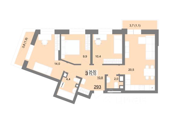 Продаётся 3-комнатная квартира в строящемся доме (Дом 1 секции 1-5), срок сдачи: II-кв. 2026, общей площадью 83.1 кв.м., на 10 этаже. Дом комфорт-класса на песчаном берегу Верх-Исетского пруда.
