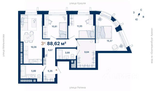 • ✓ В базе Циан 28 3-комнатных квартир на 10 этаже в микрорайоне ВИЗ в городе Екатеринбург
