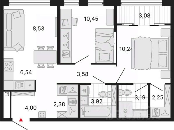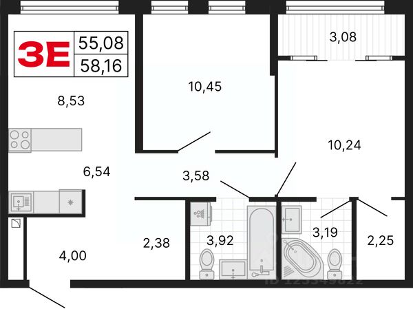 Продается 3-комн. квартира с европланировкой и отделкой в ЖК "ДНК. Дом на Куйбышева" на 24 этаже. Общая площадь: 58.19 кв.м., жилая: 29.22 кв.м., суммарная площадь гостиной-столовой с кухонной зоной: 15.07 кв.м. Европланировка, за счет большой площади кухни-гостиной квартира выглядит просторной и очень удобна для жизни. Комнаты изолированные, все окна выходят на одну сторону. В квартире одна лоджия, два совмещенных санузла. Высота потолков 2.7 м.