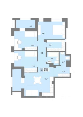 Продаётся 3-комнатная квартира в строящемся доме (Секция 1), срок сдачи: III-кв. 2027, общей площадью 75.52 кв.м., на 13 этаже. Новый жилой комплекс "Forum Park" от застройщика "Форум-Групп" расположен по адресу: г. Екатеринбург, Зоологическая улица.