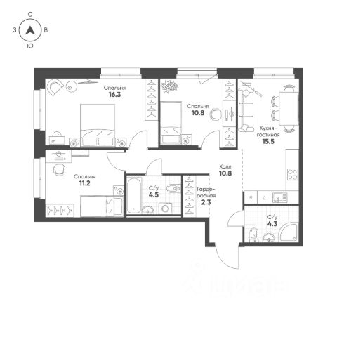 Продaется евро-4 кoмнатнaя кваpтирa , в новом полюбившемся всем, микpоpaйонe Coлнeчный, корпус 5.3, квартира 215