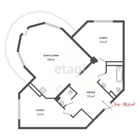• ✅ Объект наибольшей площади: 90,6 м²