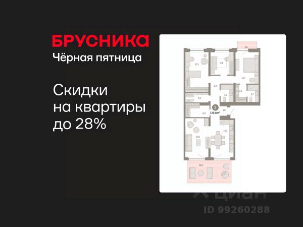 Спешите оформить бронирование по этой цене! Период акции ограничен! Стоимость квартиры указана со скидкой, ваша экономия составит 540,000 RUB. Информация по телефону, мы вам все подробно расскажем! Квартира с кухней-гостиной и тремя спальнями в Южных кварталах. Особенности планировки: предчистовая отделка, мастер-спальня, балкон. квартиры в нашей базе: ЮКВ08-Ж1.2.5. Жилой район "Южные кварталы" расположен в границах улиц Московская, Шаумяна и Фурманова, недалеко от автовокзала. До центра города — 10 минут на автомобиле. До станции метро "Чкаловская" — 15 минут пешком. Рядом находится парк, школа олимпийского резерва, несколько гимназий, лицей, детские сады и городская больница. "Южные кварталы" — проект комплексного редевелопмента территории, разработанный архитекторами Брусники совместно с голландскими бюро. Он разделен на несколько частей, каждая из которых имеет свой характер. Вдоль оживленной Московской появятся более высокие и крупные дома. Профиль спокойной и очень зелёной Шаумяна сформируют кварталы среднеи этажности. В глубине района мы расположим урбан-виллы, чуть дальше — башни-доминанты. Последние будут играть роль визуальных акцентов и впоследствии станут символами этого места. Ближе к Фурманова мы организуем образовательный кластер. Его составят два детских сада на 300 и 325 мест и школа, рассчитанная на 1500 учеников. Школа будет иметь спортивную зону, которая станет доступна и жителям района. Свяжет территорию сеть общественных пространств. Её центральным звеном станет зелёный променад, проходящий сквозь весь район и соединяющий его с парком 50-летия ВЛКСМ. #z6vc98