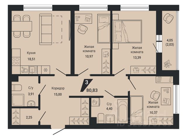 Состояние квартиры отличное, выполнен качественный ремонт в 2022 году с заменой напольного покрытия, электрики и сантехники. Установлены натяжные потолки, ламинат 33-го класса, окна — ПВХ-стеклопакеты, на одном из балконов — панорамное остекление.