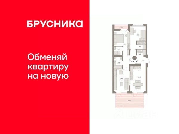 Продается трехкомнатная квартира с предчистовой отделкой в ЖК "Квартал Траектория" на 2 этаже. Общая площадь: 114 кв.м., жилая: 40 кв.м., площадь просторной кухни-столовой: 34.2 кв.м. Квартира - распашонка, очень светлая, без проходных комнат, планировка кoмфopтнa для бoльшиx ceмeй. В квартире два балкона, два совмещенных санузла. Терраса представляет собой роскошную зону отдыха, где вы на свой вкус можете создать атмосферу комфорта и уюта. Высота потолков 2.82 м. Дом монолитный, многоподъездный, переменной этажности, от 7 до 25 этажей. Квартира находится во 2-й секции высотой 7 этажей в корпусе 1-1. На этаже 7 квартир. В подъезде 1 грузовой лифт. Начало строительства - 4 квартал 2025 года. Окончание строительства - 4 квартал 2027 года. Оформление сделки по договору долевого участия. Квартира с кухней-гостиной и тремя спальнями в квартале "Траектория". Особенности планировки: окна в пол, панорамное остекление, предчистовая отделка, разнесённые спальни. квартиры в нашей базе: МНВ01-Ж2.2.6. Квартал "Траектория" строится в границах улиц Билимбаевской, Расточной, Монтажников и Маневровой Раньше здесь находился оборонный завод 5-ЦАРЗ, основанный в 1945 году. После войны он ремонтировал военную и грузовую технику — от "Виллисов" и "Студебекеров" до советских ЗИС-5 и ГАЗ-67. Сортировка — район с развитой инфраструктурой, обжитыми жилыми кварталами разных эпох и большим количеством парков. До центра Екатеринбурга — 20 минут на машине. Туда же можно отправиться на автобусе: ближайшая остановка общественного транспорта — в 4 минутах от "Траектории". Рядом с "Траекторией" расположены магазины, торговый центр, детские сады, школы, поликлиники и полезные сервисы, а также другой проект Брусники — квартал "Депо". Если хочется развлечений, можно отправиться в ТРЦ "Карнавал" и парк с аттракционами "Таганская слобода" — дорога туда займёт не более 10 минут на машине. Квартал "Траектория" — первый этап комплексного развития территории, которую раньше занимали производственные здания. На месте бывших цехов Брусника создаст дружелюбную среду и комфортное пешеходное пространство для всего района. Для озеленения квартала мы подобрали больше 60 видов растений: ольху, липу, клён, иву, грушу, вишню, сирень, барбарис, гортензию, смородину, ирис, декоративные травы. Они цветут в разное время года и постоянно меняют настроение двора. В "Траектории" мы предусмотрели несколько общественных пространств, открытых для всех горожан: встречающий сквер, лесопарк у храма и событийный сквер между домами. Когда захочется тишины и уединения, можно устроить прогулку во внутренних дворах: в них нет машин и посторонних, зато много зелени, света и мест для отдыха. Каждый двор в квартале "Траектория" — продолжение квартиры, только под открытым небом. Здесь можно прогуляться босиком по траве, устроить утреннюю йогу, почитать книгу в гамаке или отправить детей поиграть, не переживая за их безопасность. Мы закроем дворы от машин, чтобы создать безопасную среду для отды