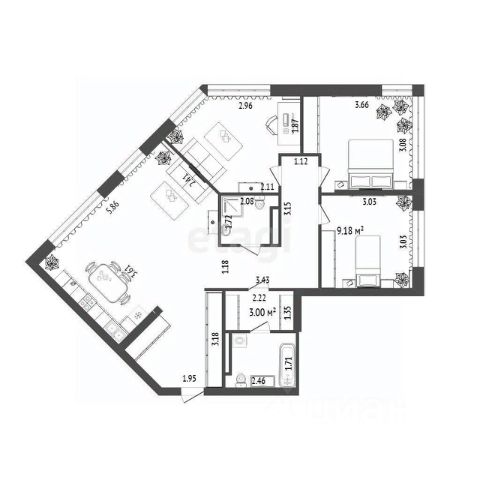 Квартира светлая, с качественной отделкой от застройщика розетки ,выключатели и рациональной планировкой распашенка ,что позволяет эффективно использовать пространство. Два сан узла Окна выходят на зеленую зону, обеспечивая приятный вид и тишину. Жилой комплекс расположен в лесопарковой зоне, что создает благоприятную среду для прогулок и отдыха.