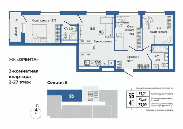 • ✅ Минимальная площадь: 48,3 м²