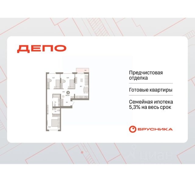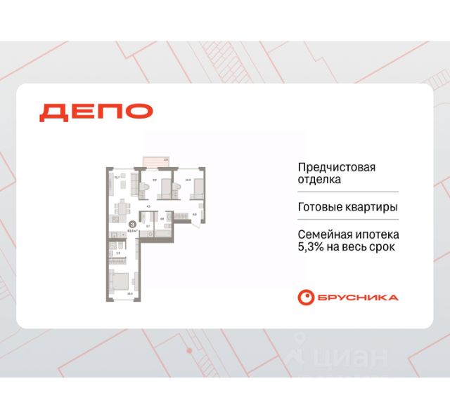 Спешите оформить бронирование на этих условиях! Предложение ограничено! Стоимость квартиры указана со скидкой, ваша экономия составит 410,000 RUB. По всем вопросам звоните в офис продаж, наши менеджеры вам все расскажут! Квартира с кухней-гостиной и тремя спальнями в квартале "Депо". Особенности планировки: окна на две стороны, второй санузел, гардеробная, вид во двор, разнесённые спальни, предчистовая отделка, мастер-спальня, балкон. квартиры в нашей базе: ДЕП04-Ж1.6.7. Квартал "Депо" расположен в активно развивающейся части Сортировки, на месте, где раньше был завод "Электротранс". Преимущества Сортировки — развитая инфраструктура. В пешей доступности — супермаркеты, остановки городского транспорта, поликлиники, детские сады, школы, гимназии, торговые центры, автоцентры, рынок с большим и доступным по стоимости выбором товаров, парк РЖД и парк с аттракционами Таганская Слобода. Квартал "Депо" расположен в границах улиц Пехотинцев — Таватуйская — Сортировочная — Новая (проектируется). Благоустройство квартала основано на трёх принципах. Первый — особое внимание к воде. Архитекторы Брусники создадут внутри застройки систему дождевых садов, которые будут фильтровать сток (в том числе с крыш зданий) и снижать нагрузку на ливневую канализацию . Второй принцип — разнообразие. Мы высадим на улицах ивы, липы, яблони разных сортов, спиреи, лапчатку и дерен, а во дворах — березы, липы, черёмухи, пузыреплодник, кизильник и манчжурский орех, который в Екатеринбурге почти не представлен. Третий принцип — зонирование. Центральный бульвар мы насытим площадками для игр детей и спокойного отдыха взрослых, на площади перед детским садом расположим окруженные деревьями плэйхабы, летние веранды кафе, открытое пространство с запоминающимся артом. #zsc8I3
