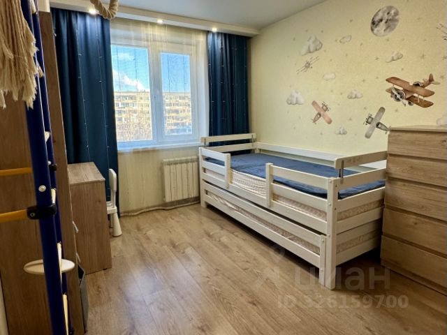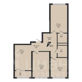 Квартира с кухней-гостиной и тремя спальнями в квартале "Депо". Особенности планировки: балкон, предчистовая отделка, разнесённые спальни.