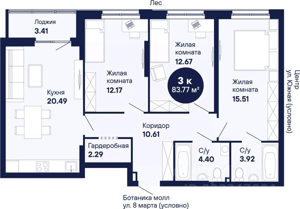 Просторная трехкомнатная квартира с предчистовой отделкой в ЖК "Милый дом" на 8 этаже. Общая площадь: 81.68 кв.м., жилая: 39.2 кв.м., площадь просторной кухни-столовой: 18.8 кв.м. Комнаты изолированные, все окна выходят на одну сторону. В квартире одна лоджия, два совмещенных санузла. Высота потолков 2.72 м.