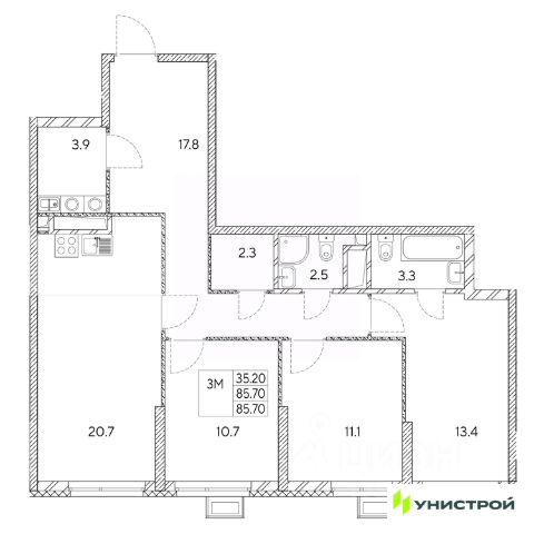 Все планировки — функциональные и подходящие новоселам как с детьми, так и без них. Есть варианты с лоджиями, где можно организовать дополнительное пространство для отдыха, спорта или работы, а еще квартиры с мастер-спальней, гардеробной, двумя санузлами. В каждой предусмотрена вытяжная вентиляция с естественным побуждением, счетчики с телеметрией и корзины для кондиционеров.