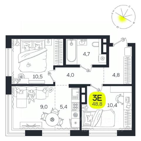 • ✅ Минимальная площадь: 48,8 м²