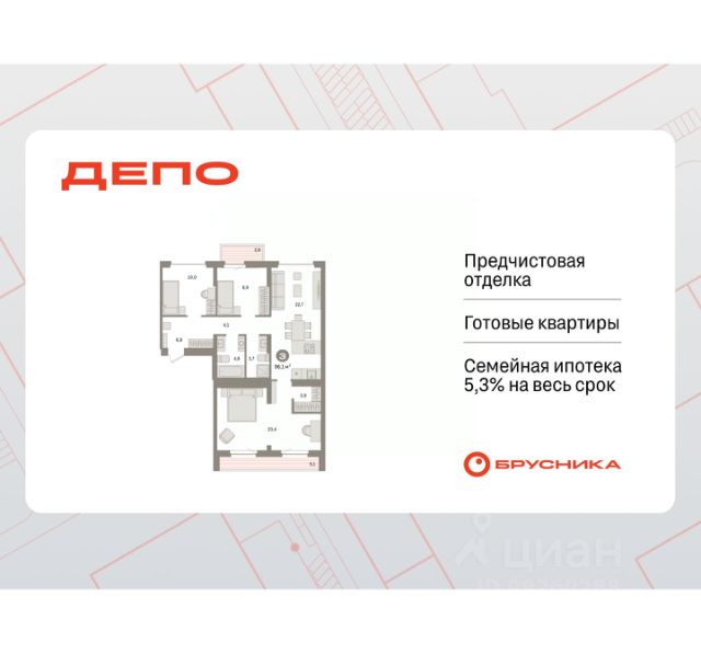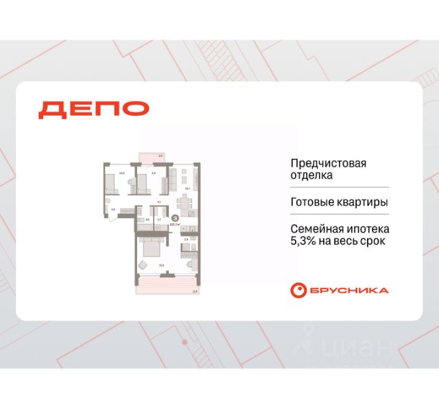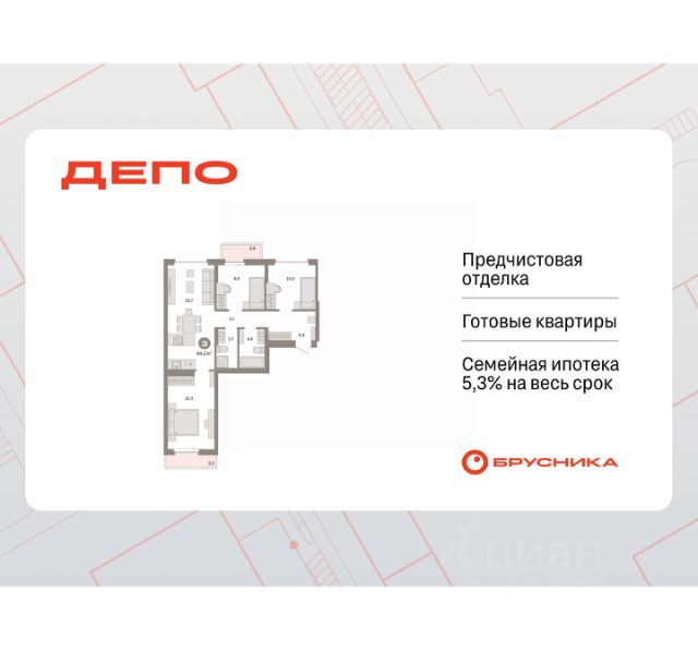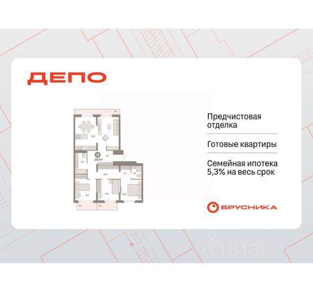 Спешите оформить бронирование по этой цене! Предложение ограничено! Стоимость квартиры указана со скидкой, ваша экономия составит 350,000 RUB. Информация по телефону, наши менеджеры вам все расскажут! 3-комн. квартира с европланировкой и предчистовой отделкой в ЖК "Квартал Траектория" на 8 этаже. Общая площадь: 73.6 кв.м., жилая: 43.3 кв.м., суммарная площадь гостиной-столовой с кухонной зоной: 26.6 кв.м. Европейская планировка, площадь комнат позволяет разместить в них все необходимое, а в просторной кухне-гостиной удобно как готовить, так и отдыхать. Комнаты изолированные, все окна выходят на одну сторону. В квартире одна лоджия, два совмещенных санузла. Высота потолков 2.82 м. Дом монолитный, многоподъездный, переменной этажности, от 7 до 16 этажей. Квартира находится в 4-й секции высотой 16 этажей в корпусе 1-2. На этаже 7 квартир. В подъезде 1 пассажирский и 1 грузовой лифт. Начало строительства - 4 квартал 2025 года. Окончание строительства - 4 квартал 2027 года. Оформление сделки по договору долевого участия. Квартира с кухней-гостиной и тремя спальнями в квартале "Траектория". Особенности планировки: лоджия, мастер-спальня, предчистовая отделка, разнесённые спальни. квартиры в нашей базе: МНВ01-Ж12.8.5. Квартал "Траектория" строится в границах улиц Билимбаевской, Расточной, Монтажников и Маневровой Раньше здесь находился оборонный завод 5-ЦАРЗ, основанный в 1945 году. После войны он ремонтировал военную и грузовую технику — от "Виллисов" и "Студебекеров" до советских ЗИС-5 и ГАЗ-67. Сортировка — район с развитой инфраструктурой, обжитыми жилыми кварталами разных эпох и большим количеством парков. До центра Екатеринбурга — 20 минут на машине. Туда же можно отправиться на автобусе: ближайшая остановка общественного транспорта — в 4 минутах от "Траектории". Рядом с "Траекторией" расположены магазины, торговый центр, детские сады, школы, поликлиники и полезные сервисы, а также другой проект Брусники — квартал "Депо". Если хочется развлечений, можно отправиться в ТРЦ "Карнавал" и парк с аттракционами "Таганская слобода" — дорога туда займёт не более 10 минут на машине. Квартал "Траектория" — первый этап комплексного развития территории, которую раньше занимали производственные здания. На месте бывших цехов Брусника создаст дружелюбную среду и комфортное пешеходное пространство для всего района. Для озеленения квартала мы подобрали больше 60 видов растений: ольху, липу, клён, иву, грушу, вишню, сирень, барбарис, гортензию, смородину, ирис, декоративные травы. Они цветут в разное время года и постоянно меняют настроение двора. В "Траектории" мы предусмотрели несколько общественных пространств, открытых для всех горожан: встречающий сквер, лесопарк у храма и событийный сквер между домами. Когда захочется тишины и уединения, можно устроить прогулку во внутренних дворах: в них нет машин и посторонних, зато много зелени, света и мест для отдыха. Каждый двор в квартале "Траектория" — продолжение квартиры, только под открытым