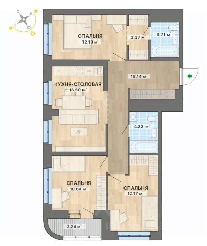 Квартира 128 в подъезде 2. Кварталы "Северное Сияние" — удачный пример того, как Уралмаш обновляется, оставаясь зелёным и удобным районом. Новая очередь проекта строится на ул. Авангардная, рядом с Летним парком и метро. Архитекторы проекта проработали каждую планировку, уделив особое внимание эргономике помещений и их освещённости. Покупателей ждут квартиры с террасами на нижних и верхних этажах, квартиры с лоджиями. Для любителей простора есть планировки со вторым светом. Из квартиры можно попасть на лифте в паркинг, где есть зоны разгрузки, а также расширенные машиноместа с зонами хранения. На первом этаже жилого дома предусмотрены магазины и кафе, а также помещения выставочных салонов.