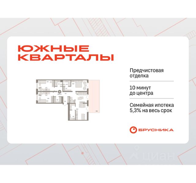 Успейте оформить бронирование по этой цене! Предложение ограничено! Стоимость квартиры указана со скидкой, ваша экономия составит 630,000 RUB. По всем вопросам обращайтесь в офис продаж, наши менеджеры вам все расскажут! Квартира с кухней-гостиной и тремя спальнями в Южных кварталах. Особенности планировки: окна на две стороны, второй санузел, гардеробная, окна в пол, вид во двор, разнесённые спальни, предчистовая отделка, мастер-спальня, постирочная, терраса на крыше. квартиры в нашей базе: ЮК04-А1-3-3.2.4. Жилой район "Южные кварталы" расположен в границах улиц Московская, Шаумяна и Фурманова, недалеко от автовокзала. До центра города — 10 минут на автомобиле. До станции метро "Чкаловская" — 15 минут пешком. Рядом находится парк, школа олимпийского резерва, несколько гимназий, лицей, детские сады и городская больница. "Южные кварталы" — проект комплексного редевелопмента территории, разработанный архитекторами Брусники совместно с голландскими бюро. Он разделен на несколько частей, каждая из которых имеет свой характер. Вдоль оживленной Московской появятся более высокие и крупные дома. Профиль спокойной и очень зелёной Шаумяна сформируют кварталы среднеи этажности. В глубине района мы расположим урбан-виллы, чуть дальше — башни-доминанты. Последние будут играть роль визуальных акцентов и впоследствии станут символами этого места. Ближе к Фурманова мы организуем образовательный кластер. Его составят два детских сада на 300 и 325 мест и школа, рассчитанная на 1500 учеников. Школа будет иметь спортивную зону, которая станет доступна и жителям района. Свяжет территорию сеть общественных пространств. Её центральным звеном станет зелёный променад, проходящий сквозь весь район и соединяющий его с парком 50-летия ВЛКСМ. #zsZm5u