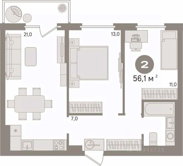 Объект N 193488. Продаётся светлая и просторная трёхкомнатная квартира в в ЖК Березки, расположенном всего в 15 минутах езды от Екатеринбурга.