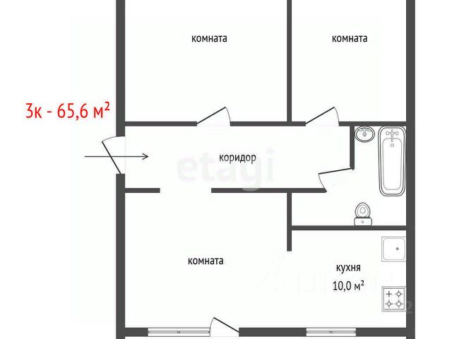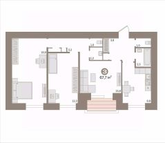 Квартира общей площадью 55,4 кв. м: