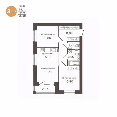 Кухня-гостиная позволяет размещать гостей, обустроить там игровую зону, либо зону отдыха. Спальни имеют достаточную площадь для размещения мест хранения, рабочей и приватной зоны.