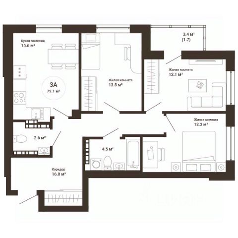 Квартира находится в ЖК "Бодровский" от федерального застройщика "Паритет Девелопмент". Это жилой комплекс комфорт-класса с современной архитектурой, расположенный в Екатеринбурге в районе улиц Патриса Лумумбы и 2-й Новосибирской. Добраться от него до центра города можно всего за 25 минут, дорога до ЕКАДа займет 12 минут. В окружении жилого комплекса есть шесть детских садов, пять школ, три больших парка, пять спорткомплексов, в том числе курортный комплекс Уктус. Квартал состоит из двух секций переменной этажности (от 14 до 24 этажей) и подземного паркинга с кладовыми, к которым можно будет спуститься на лифте. На первых этажах предусмотрены коммерческие помещения: жители смогут сделать маникюр, воспользоваться услугами ателье, выпить кофе с круассаном, не покидая своего района. Ввод в эксплуатацию в III кв. 2027 года. Территория комплекса огорожена от машин и посторонних людей. Озеленение с многолетними растениями и деревьями создает ощущение близости к природе. Двор наполнен всем необходимым: песочницы и качели для самых маленьких, интерактивная башня для детей постарше, воркаут-зона и места для отдыха. На всей территории реализована безбарьерная среда. В парадных выполнен авторский ремонт. За счет панорамного остекления и 4-метровых потолков там всегда много естественного света. Предусмотрены колясочные с местами для хранения спортинвентаря и креплениями для велосипедов. В проекте представлены студии, классические одно- и двухкомнатные варианты, а также двух-, трех- и четырехкомнатные квартиры в евроформате площадью от 25,32 до 76,65. Все планировки — функциональные и подходящие новоселам как с детьми, так и без них. Есть варианты с лоджиями, где можно организовать дополнительное пространство для отдыха, спорта или работы, а еще квартиры с мастер-спальней, гардеробной, двумя санузлами. В каждой предусмотрена вытяжная вентиляция с естественным побуждением, счетчики с телеметрией и корзины для кондиционеров. Характеристики квартиры: этаж - 10 количество комнат - 3 номер помещения - 89 площадь квартиры - 55,9 кв.м Чтобы сэкономить время и деньги, можно приобрести квартиру сразу с ремонтом от застройщика. На выбор 3 конфигурации: базовый, с кухонным гарнитуром, с кухонным гарнитуром и другой мебелью - в светлом и темном оттенках. Ремонт можно включить в ипотеку.