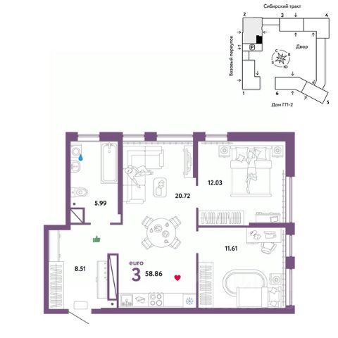 Приватный двор с видеонаблюдением скрыт между домами и закрыт для автомобилей и случайных прохожих. Здесь приятно проводить время в любое время года: летом можно укрыться в тени деревьев, осенью наслаждаться яркими красками, зимой гулять вдоль заснеженных яблонь, а весной встречать пробуждение природы.