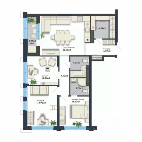 Продается двухкомнатная квартира от застройщика с отделкой в ЖК "ДНК. Дом на Куйбышева" на 25 этаже. Общая площадь: 58.83 кв.м., жилая: 21.78 кв.м., площадь просторной кухни-столовой: 17.71 кв.м. Угловая квартира, идеально подойдет любителям тишины и панорамных видов. В квартире одна лоджия, один совмещенный и один раздельный санузел. Высота потолков 2.7 м.