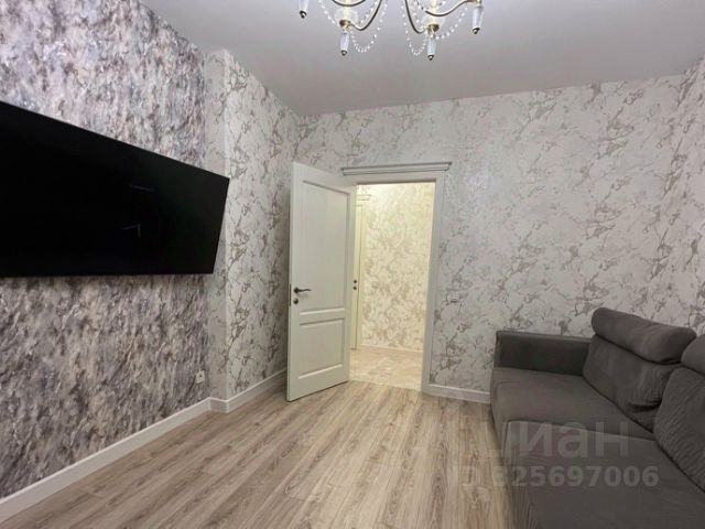 Одна комната изолированная (спальня). Другая комната (гостиная) совмещена с кухней (по проекту дома). Гостиная и рабочая зона кухни зонированы (разделены перегородкой, предусмотренной проектом дома).