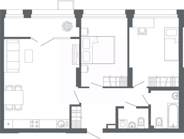 Просторная трехкомнатная квартира с европланировкой и отделкой в ЖК "ДНК. Дом на Куйбышева" на 22 этаже. Общая площадь: 58.19 кв.м., жилая: 29.22 кв.м., общая площадь гостиной-столовой с кухонной зоной: 15.07 кв.м. Европланировка, за счет большой площади кухни-гостиной квартира выглядит просторной и очень удобна для жизни. Комнаты изолированные, все окна выходят на одну сторону. В квартире одна лоджия, два совмещенных санузла. Высота потолков 2.7 м.
