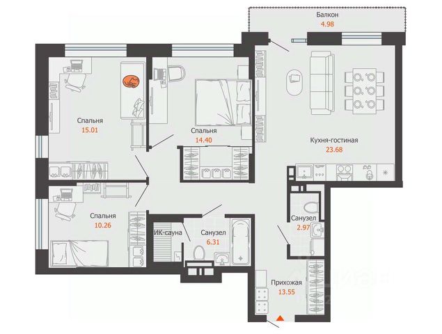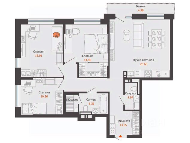 Скидка до 13% формируется при оплате наличными, либо при оформлении ипотеки у банков-партнеров по базовым ставкам В экологически чистом районе Широкой Речки, всего в 10 км от центра Екатеринбурга, продается 3-комнатная квартира площадью 79.00 кв. м. Квартира находится в 4/3 корпусе жилого комплекса комфорт-класса "ЛЕС" (Застройщик - компания "Железно"). Квартал "ЛЕС" бережно расположен прямо внутри соснового бора. Все преимущества отдыха на природе ежедневно - достаточно выглянуть в окно. Наслаждайтесь уютом загородного дома с комфортом городской среды. Удобная локация в окружении природы: Половинное озеро и чистый сосновый лес в 5 минутах ходьбы; На расстоянии 1 км - автобусная остановка "Широкая речка"; В ближайшее время будет запущено строительство новых автомобильных дорог и организация дополнительных маршрутов общественного транспорта. Живой квартал у леса Лес - главный герой квартала. Дома находятся в окружении соснового бора, а их этажность - до 8 этажей - не превышает крон сосен. В новом жилом комплексе большое внимание уделено заботе о сохранении деревьев и реализации специальных программ по высадке новых, чтобы жители наслаждались прекрасной растительностью каждый день. Комфорт и Умный дом Концепция заботы о лесе и любви к природе продолжается в интерьерах лобби. Здесь преобладают мягкие естественные оттенки, а мебель выполнена из экологичных материалов, передающих естественную текстуру дерева. В каждой квартире установлен кран с питьевой водой, тепло жителям обеспечивает собственная котельная. Управлять своим домом помогает собственное мобильное приложение от застройщика - "Мажордом". Чаты с жильцами, заявки в СК Азбука, бесключевой доступ, IP домофония, оплата ЖКХ. Управляйте домом из любой точки мира в один клик! Благоустройство На территории комплекса появится открытый парк, площадью в 6,3 Га, прогулки по которому станут для жителей любимым занятием. Парковое пространство предусматривает различные сценарии для активного и спокойного отдыха: пешеходные экотропы, протяженные веломаршруты, специальные игровые и спортивные площадки, релакс-зоны и места для творчества. Все элементы благоустройства выполнены из экологичных высококачественных материалов. Отдых на свежем воздухе в приятном уединении или в кругу веселой компании друзей доступен жителям живых кварталов в любое время, когда они этого пожелают.