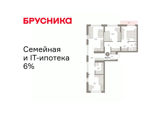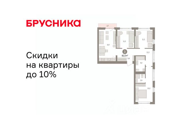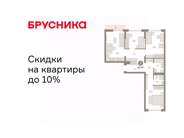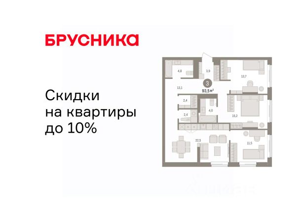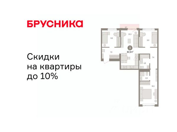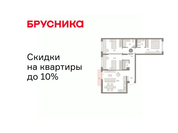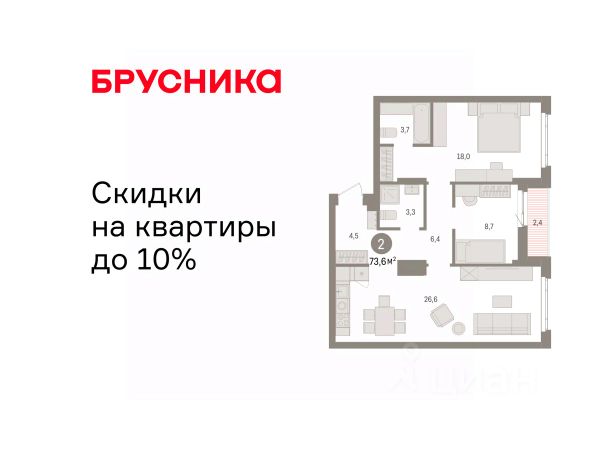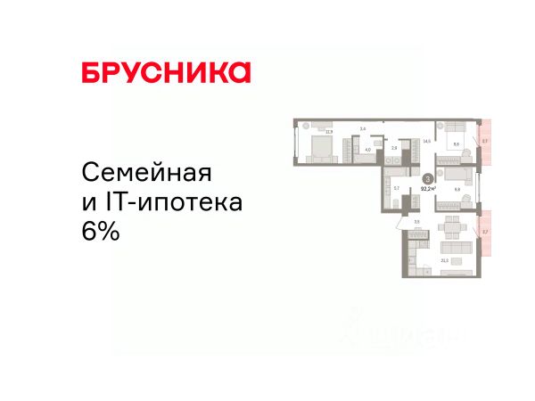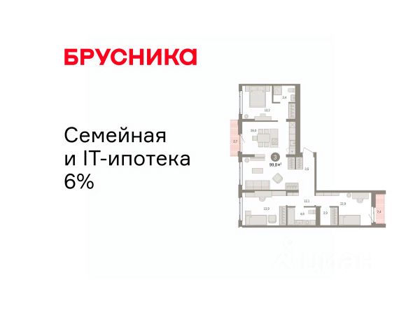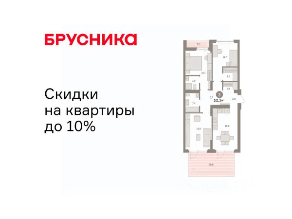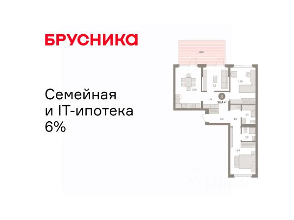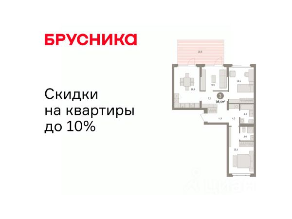 Спешите оформить бронирование по акционной цене! Предложение ограничено! Стоимость квартиры указана со скидкой, ваша экономия составит 350,000 RUB. Звоните, наши менеджеры вам все расскажут! Трехкомнатная квартира с европланировкой и предчистовой отделкой в ЖК "Квартал Траектория" на 9 этаже. Общая площадь: 73.6 кв.м., жилая: 43.3 кв.м., общая площадь гостиной-столовой с кухонной зоной: 26.6 кв.м. Европланировка, площадь комнат позволяет разместить в них все необходимое, а в просторной кухне-гостиной удобно как готовить, так и отдыхать. Комнаты изолированные, все окна выходят на одну сторону. В квартире одна лоджия, два совмещенных санузла. Высота потолков 2.82 м. Дом монолитный, многоподъездный, переменной этажности, от 7 до 16 этажей. Квартира находится в 4-й секции высотой 16 этажей в корпусе 1-2. На этаже 7 квартир. В подъезде 1 пассажирский и 1 грузовой лифт. Начало строительства - 4 квартал 2025 года. Окончание строительства - 4 квартал 2027 года. Оформление сделки по договору долевого участия. Квартира с кухней-гостиной и тремя спальнями в квартале "Траектория". Особенности планировки: предчистовая отделка, разнесённые спальни. квартиры в нашей базе: МНВ01-Ж12.9.5. Квартал "Траектория" строится в границах улиц Билимбаевской, Расточной, Монтажников и Маневровой Раньше здесь находился оборонный завод 5-ЦАРЗ, основанный в 1945 году. После войны он ремонтировал военную и грузовую технику — от "Виллисов" и "Студебекеров" до советских ЗИС-5 и ГАЗ-67. Сортировка — район с развитой инфраструктурой, обжитыми жилыми кварталами разных эпох и большим количеством парков. До центра Екатеринбурга — 20 минут на машине. Туда же можно отправиться на автобусе: ближайшая остановка общественного транспорта — в 4 минутах от "Траектории". Рядом с "Траекторией" расположены магазины, торговый центр, детские сады, школы, поликлиники и полезные сервисы, а также другой проект Брусники — квартал "Депо". Если хочется развлечений, можно отправиться в ТРЦ "Карнавал" и парк с аттракционами "Таганская слобода" — дорога туда займёт не более 10 минут на машине. Квартал "Траектория" — первый этап комплексного развития территории, которую раньше занимали производственные здания. На месте бывших цехов Брусника создаст дружелюбную среду и комфортное пешеходное пространство для всего района. Для озеленения квартала мы подобрали больше 60 видов растений: ольху, липу, клён, иву, грушу, вишню, сирень, барбарис, гортензию, смородину, ирис, декоративные травы. Они цветут в разное время года и постоянно меняют настроение двора. В "Траектории" мы предусмотрели несколько общественных пространств, открытых для всех горожан: встречающий сквер, лесопарк у храма и событийный сквер между домами. Когда захочется тишины и уединения, можно устроить прогулку во внутренних дворах: в них нет машин и посторонних, зато много зелени, света и мест для отдыха. Каждый двор в квартале "Траектория" — продолжение квартиры, только под открытым небом. Здесь можно прогуляться босиком 3-комнатная квартира в ипотеку в новостройке в районе Железнодорожный в городе Екатеринбург.